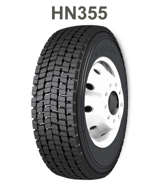 HN355 – Guma predviđena za regionalni transport na pogonskoj osovini u svim vremenskim uslovima (M+S). Odlikuju je izuzetna vuča i veliki broj pređenih kilometara. Ovaj pneumatik ima širok trag i kvadratna ramena koji obezbeđuju poboljšanu stabilnost i kontrolu. Sigurnosni blokovi gazećeg sloja obezbeđuju izuzetnu kontrolu i distribuciju težine. Produženi duboki žljebovi za poboljšano hlađenje gazećeg sloja gume. ON/OFF guma pogodna za sve terene. Pouzdana guma koja garantuje odlično prijanjanje pri promeni terena i uslova opterećenja.
